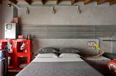 Стиль, в котором присутствуют элементы технической оснащенности в жилище, дополнены и дизайнерски разработаны, имеет название – стиль брутализма, где-то он перекликается с лофт-культурой, хай-теком. Эта квартира принадлежит известному бразильскому архитектору Гильерме Торресу. Признаками этого стиля являются все те элементы,которые на чей-то изысканный вкус покажутся неуместными, но благодаря их интерпретации автора становятся привлекательными. Это и массивные конструкции и элементы, и незадекорированные железобетонные стены, и электрическая проводка, бросающаяся в глаза благодаря трубам, в которые она вложена, и которые в свою очередь задают направление движения в пространстве помещения, снабженные дополнительными светильниками по периметру.